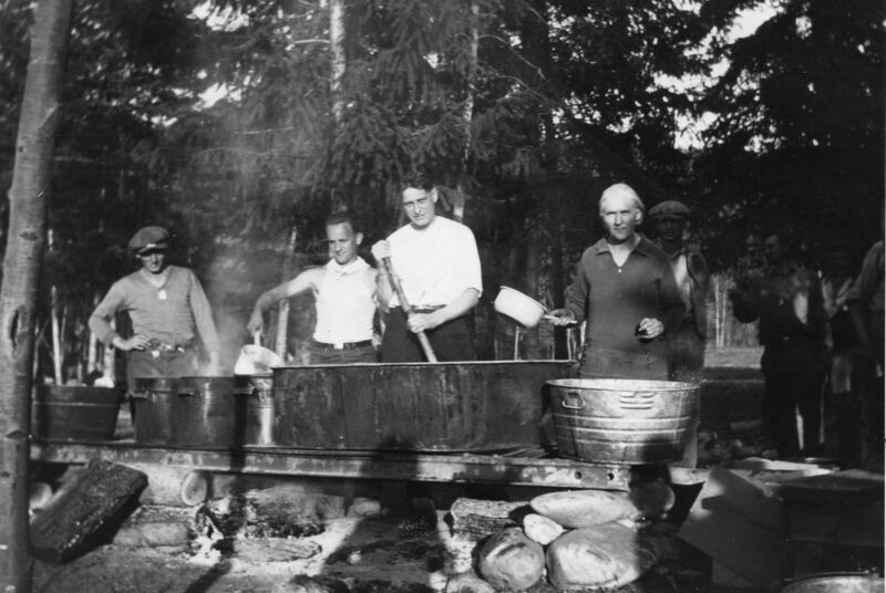 The man stirring the stew is Slim Evans, whose organizing of the Trek is central to the history of working people in British Columbia. To his left is Aleta Sorley, a resident of Golden and organizer with the Workers’ Unity League.