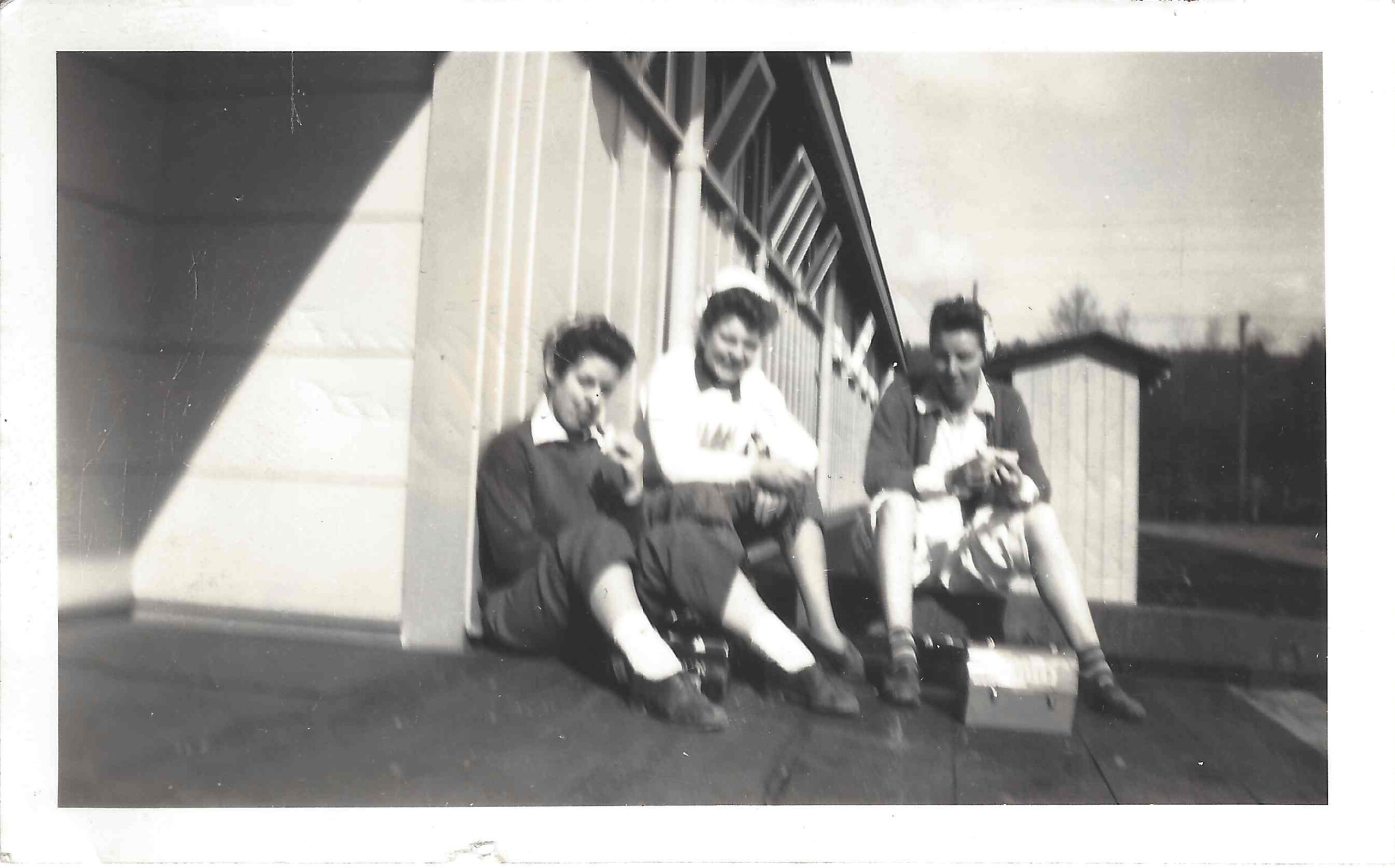 Alice West (centre) operated a cut-off saw at Vancouver Plywood during World War II. She was instrumental in organizing a union at the plant, and attended her first IWA Convention in 1943. Alice West Fonds, BCLHC.