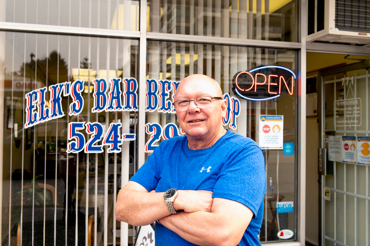In March 2020 all personal service establishments in British Columbia were closed by order of the Provincial Health Officer in response to the COVID-19 pandemic. Guy Quesnel, who owns Elk’s Barbershop “assumed it would only last a couple of weeks. Maybe a month.” He thought it would be a bit like a vacation. “It was no holiday!” Quesnel insists. The shop ended up being shut for ten weeks.