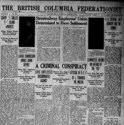 Originally started in 1907 by the Vancouver Trades and Labor Council as the Western Wage Earner, the British Columbia Federationist was a weekly labor newspaper published in Vancouver, BC.