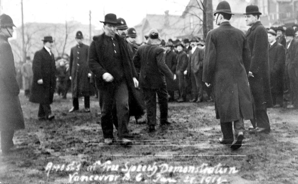 Arrests at the Free Speech demonstration, Vancouver, 1912. BC Archives D-06368.