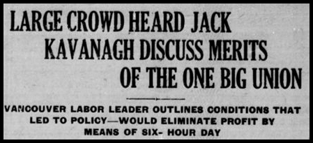 An ardent Marxist, Jack Kavanagh was a popular and articulate public speaker. His time in Vancouver paralleled key moments in BC labour history including the Free Speech fights of 1912, Industrial Workers of the World organizing, the Vancouver Island Coal Miners Strike and the One Big Union.