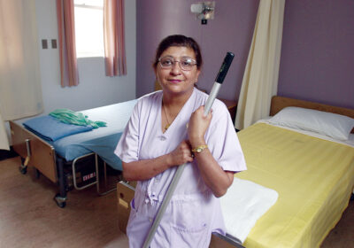 In 2002 thousands of hospital laundry, dietary and housekeeping employees lost their decently paid union jobs. HEU photo.