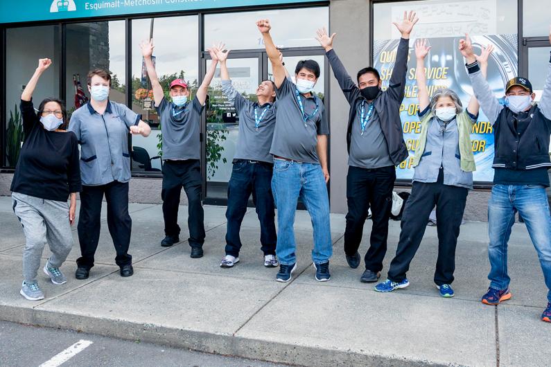 HEU members celebrate the reversal of privatization of cleaning and dietary work in BC hospitals, Aug. 30, 2021. HEU photo.
