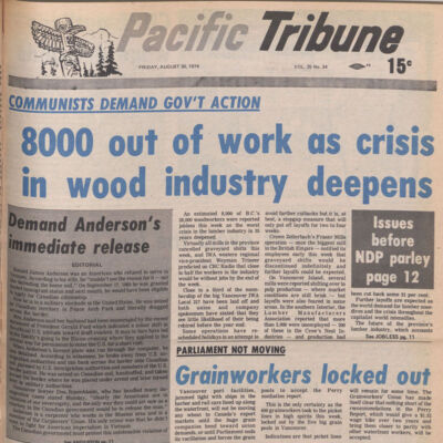 The Pacific Tribune, was a consistent source of reporting and analysis of labour movements and people’s struggles in British Columbia. Originally established by the Communist Party of Canada as the BC Workers’ News in 1935, the newspaper began publishing under the Pacific Tribune title in 1946.