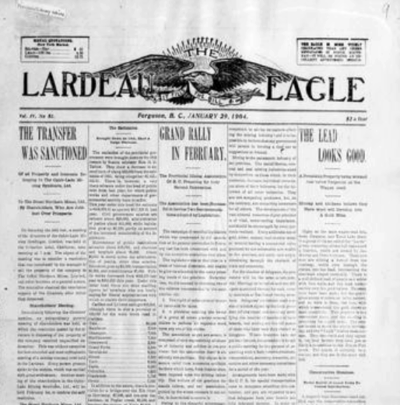 This collection of 224 issues of The Lardeau Eagle is part of the BC Historical Newspapers Collection held at the University of British Columbia. Issues can be searched by date, keywords and names.