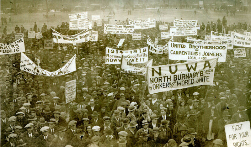 Despite police predictions that it would be a “dismal failure”, 6,000 men, women and children descended on the Powell Street grounds (now Oppenheimer Park) in Vancouver on February 22, 1932 for a “Hunger March”, organized by the Communist Party of Canada (CPC) to demonstrate for better conditions for workers. Their demands were basic: unemployment insurance, work with wages and other rights Canadians now consider fundamental.