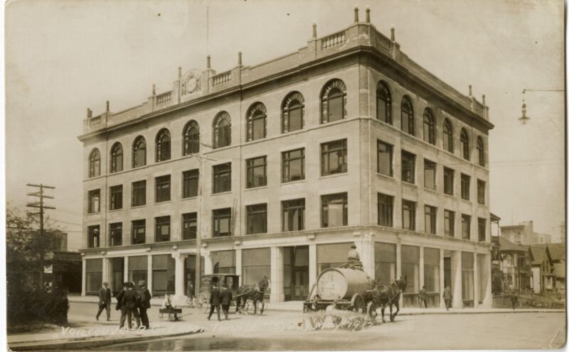 Vancouver’s downtown building boom was still going strong when Council delegates decided to move ahead with their dream. They established the Vancouver Labor Temple Company Ltd. (VLTC) in December of 1909 with a Board of Directors comprised of union members. James H. McVety, a Council delegate, was designated Building Manager. VTLC affiliates, mostly in craft unions, purchased blocks of shares at $1 each. Architect Thomas Hooper was hired to develop the building design and Norton Griffiths, an engineering and contracting firm, to oversee construction.