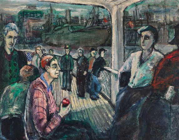 “The Shipyard Workers on Ferry” by Molly Lamb Bobak. Retrieved from artnet.com 2019-11.