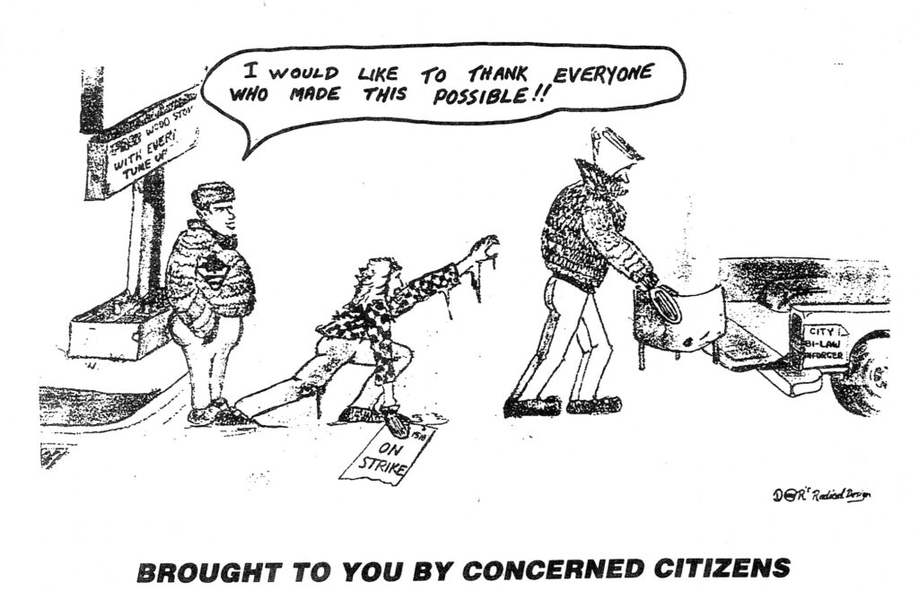 It was a ‘win’ for store owner Tom Steadman when City Council voted to prohibit “picket line aids” such as burning barrels and shelters. BCLHC Archives, UFCW Collection.