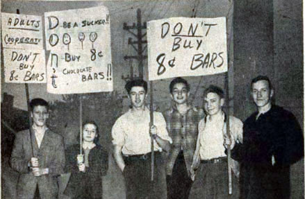 The kids had had enough, and demanded a boycott of chocolate bars until the price came down. Picket lines and parades were held by the children protesting.