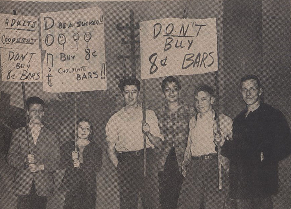In 1947, youth in Chemainus and Ladysmith, B.C. led the first ever children’s strike. It was a protest against the rising cost of chocolate. The price of a typical bar had ballooned suddenly from five cents to eight cents.